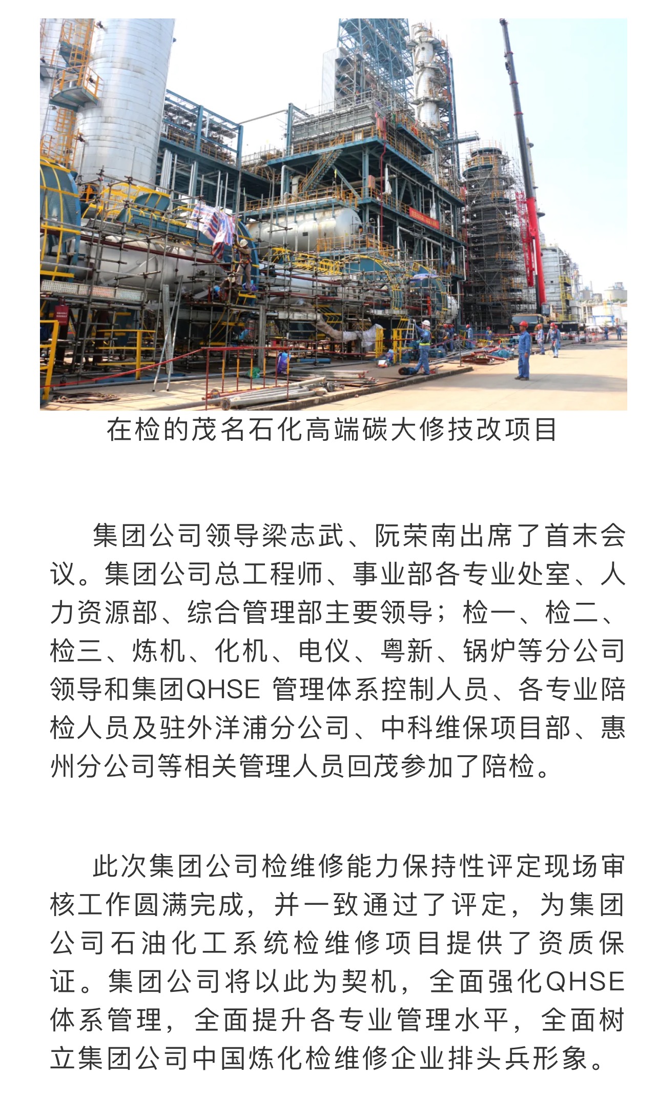 集團公司檢維修能力保持性評定現(xiàn)場審核工作圓滿完成