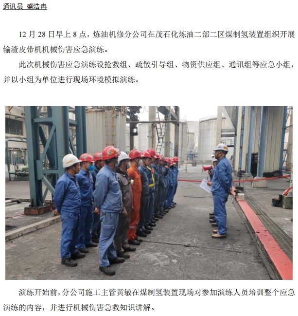 煉油機(jī)修開展機(jī)械傷害應(yīng)急演練