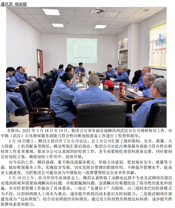 顧昌到武漢分公司調(diào)研指導(dǎo)工作