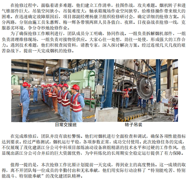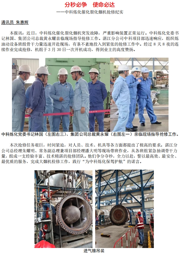 中科煉化催化裂化煙機(jī)搶修紀(jì)實(shí)