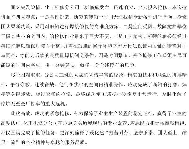 聞令而動!化工機(jī)修分公司高效搶修守護(hù)業(yè)主生產(chǎn)生命線